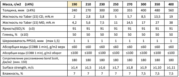 Двукратное мелование лицевой стороны обеспечивает хорошие показатели белизны и гладкости для красочной печати. Оборотная сторона имеет легкое мелование и допускает печать.